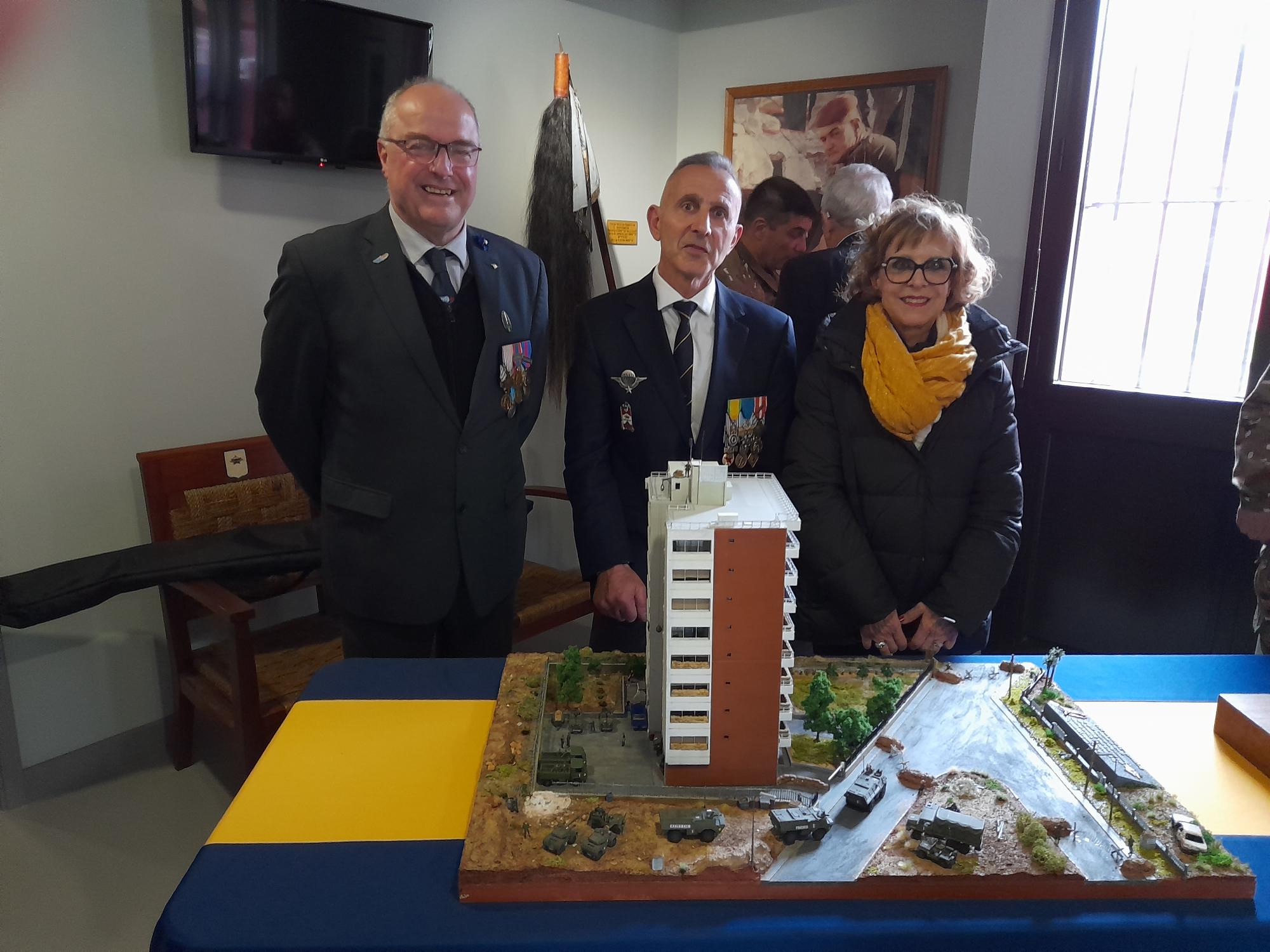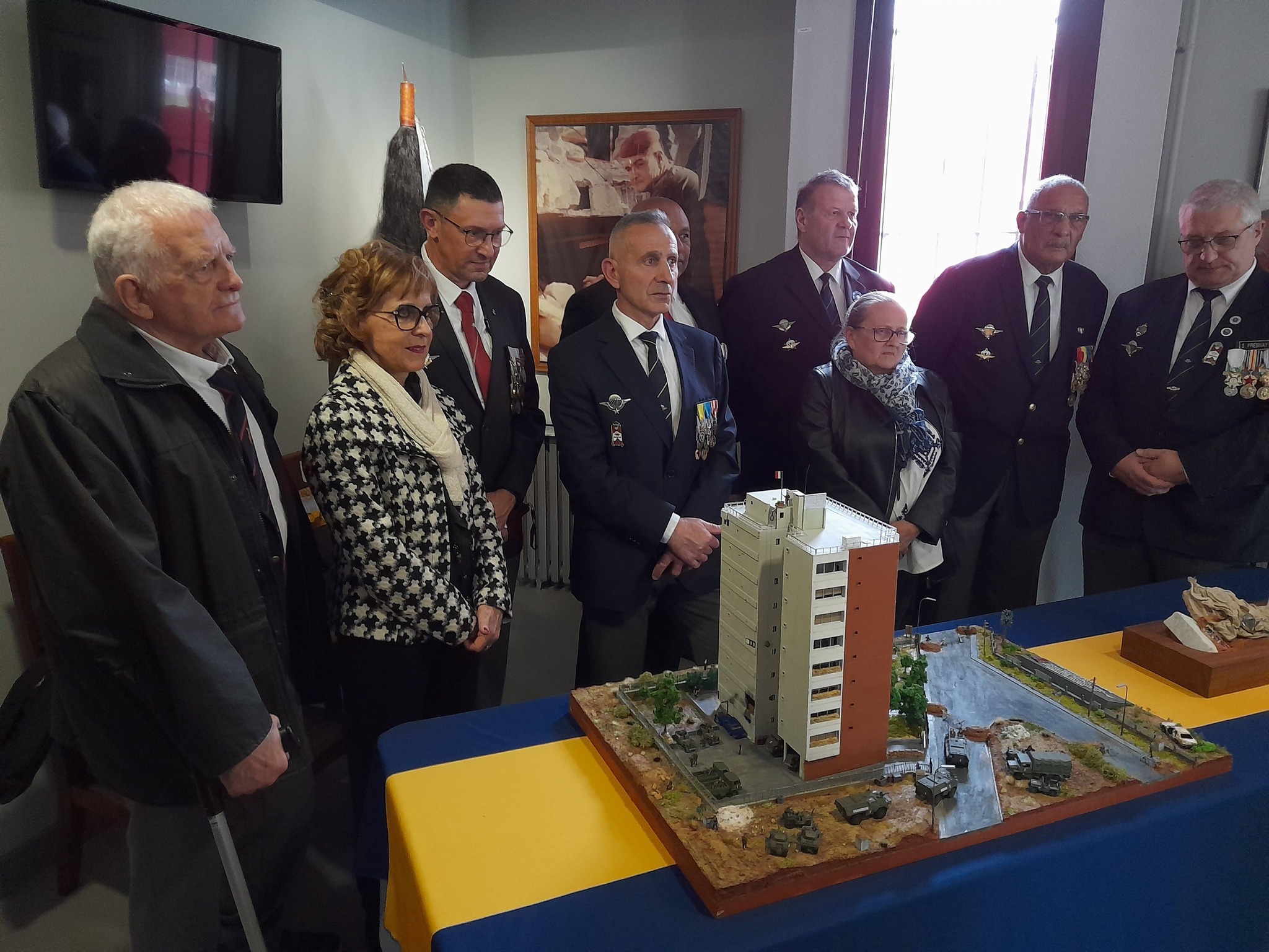 La présidente de l’ARFVA-DRAKKAR, Mme Janine THOMAS a pris la parole puis, l’ADC (er) Eric CUNIER (qui a réalisé la maquette) ancien de la 2eme compagnie du 9ème RCP l’a dévoilée.